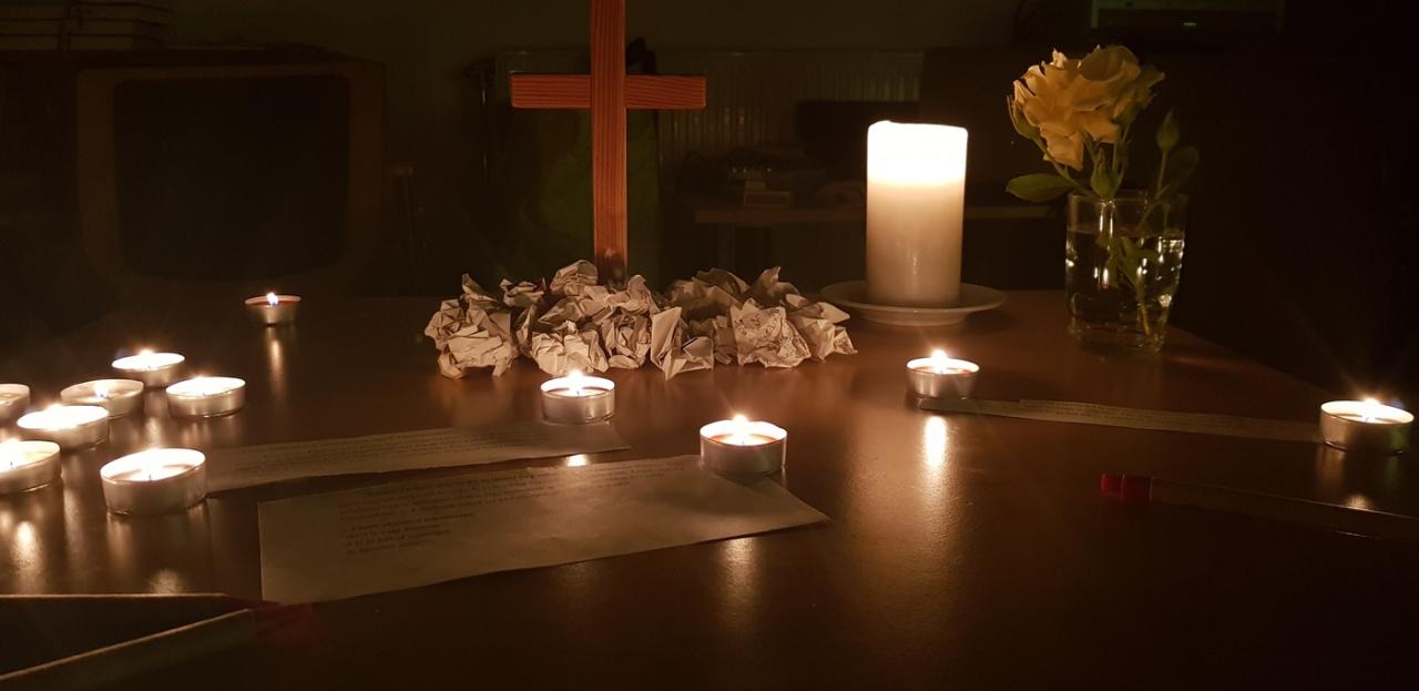 A nap – a hét – egyéni lezárására Roland és Szeli Noémi egy nagyon jól megalkotott imaösvényt készítettek a nagyteremben – ahol a gyertyák, a zene, a képek, a virágok és az olvasnivaló gondolatok, imák harmonikus egységet képeztek, lehetőséget teremtve az elcsendesedésre.